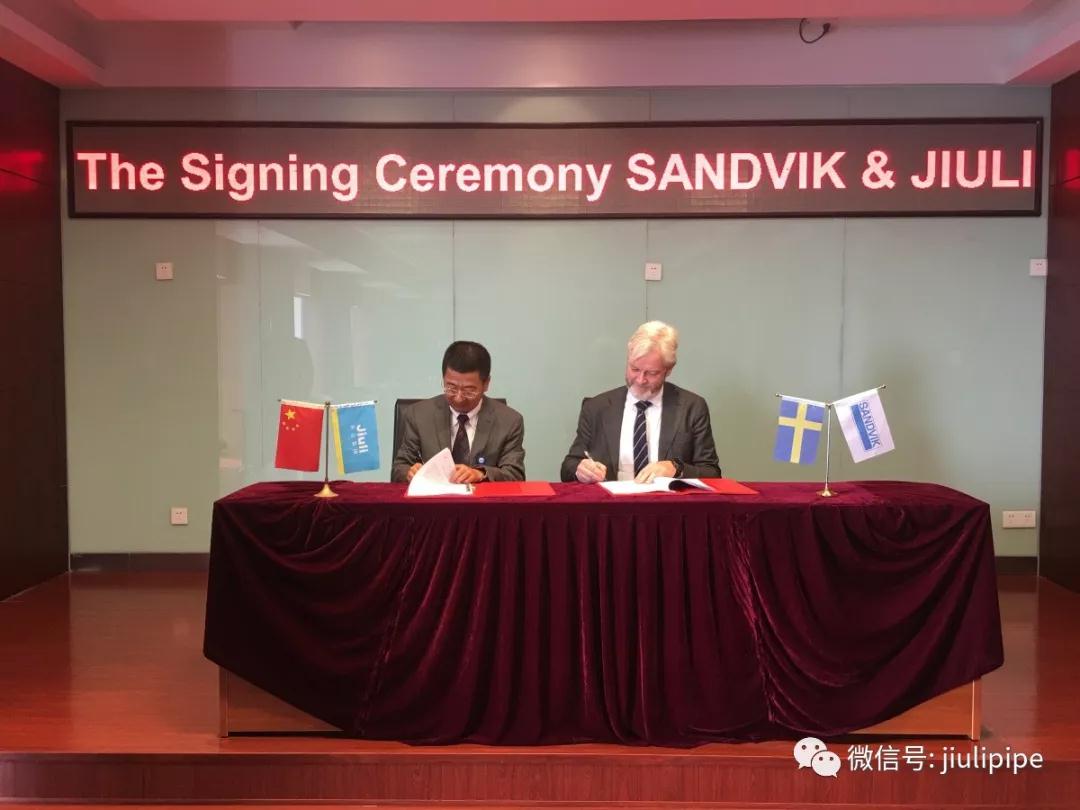 久立特材董事長李鄭周Denny Lee與山特維克材料科技副總裁Michael Andersson 作為雙方代表在協議上簽字。公司董事局主席周誌江及山特維克材料科技代表出席見證了本次簽約儀式。