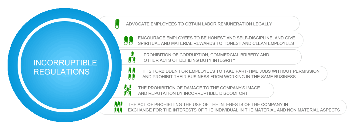 In order to build a clean government, prevent corruption, and speed up the incorruptibility construction among employees, JIULI works out Ordinance to Combat Corruption and Build a Clean Government. With this ordinance. JIULI hope everyone could be self-disciplined, or they will be punished.